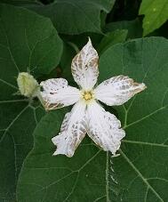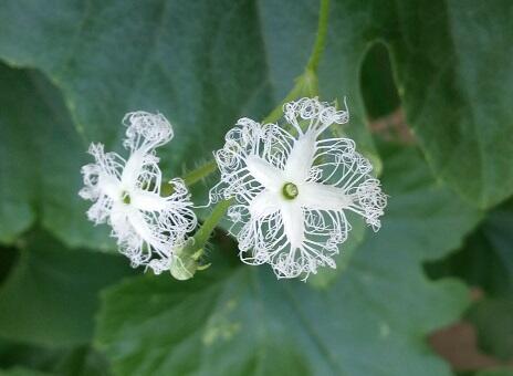 ↓は、ヘビウリの花。花びらの先端が、細い糸状でレースのようです。
