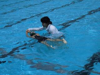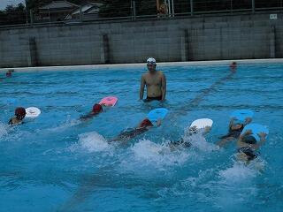 あおり足にならずよく進むバタ足の練習や、ビート板を持つ位置に気を付けて、水中で体幹をまっすぐにする練習などが行われました。