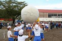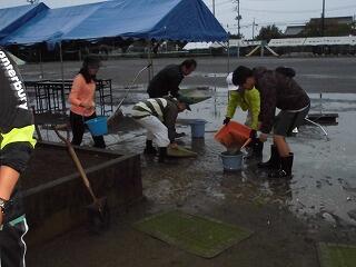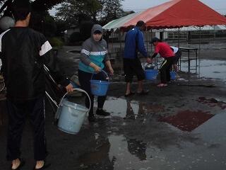 校庭中水浸しの中実施できたのはひとえに地域の方々のご協力のおかげです。