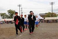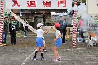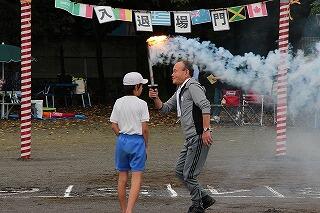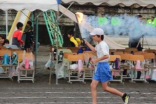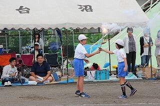 当時の職員の発案(その職員は縁あって再び本校職員として勤務しています。)で実施しました。人と人の思いを炬火(松明)でつなぐリレーは国体でも行われており、地域と一緒の運動会では地域の人たちと心を一つにするセレモニーとして、毎年行っています。