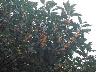 スイミー池にあるキンモクセイの花が咲き、花びらが池に落ちて辺りには甘い香りが漂っています。