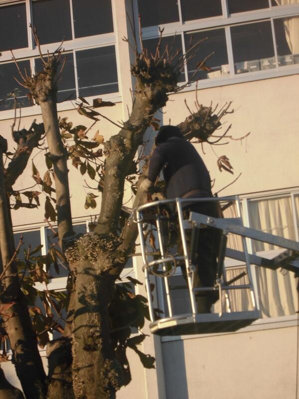 可愛いコゲラが一生懸命幹に穴を空け、巣を作っていたトチノキですが、太い幹が枯れてしまっていました。