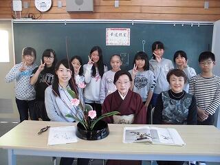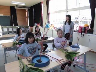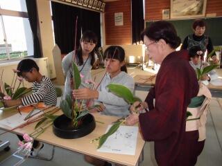 6時間目のクラブ、日本伝統クラブでは外部講師を招いて華道教室が行われました。