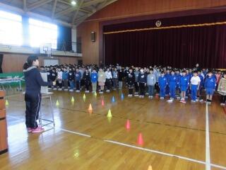 体育館に6年生を迎え、初めて全校合同での練習しました。