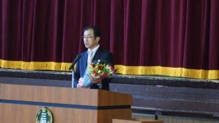 一人一人の先生方からご挨拶いただきました。校長先生、教頭先生。