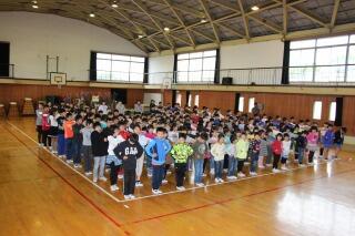 時間前に集まり、今月の歌を歌いました。初めに剣道関係の表彰です。
