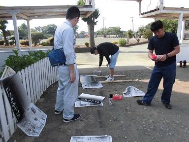 うえるときの注意をよく聞いて、ていねいに土をかぶせていました。