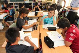 「この問題難しいねえ。」「あっ、わたしと同じ問題だー!」