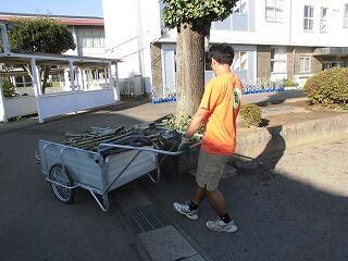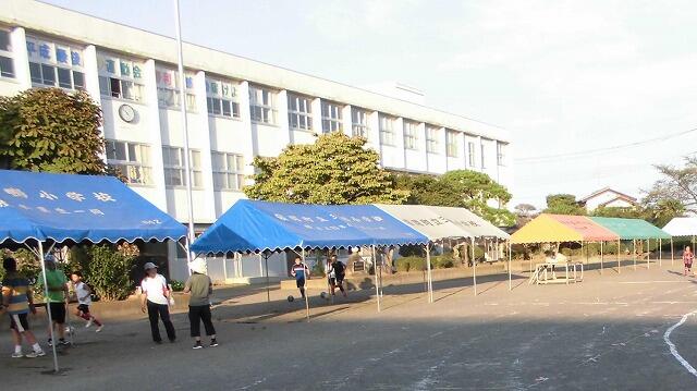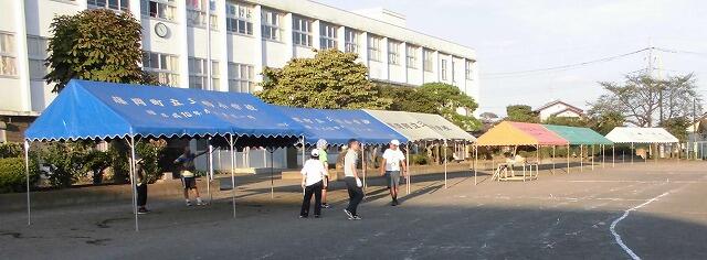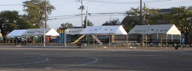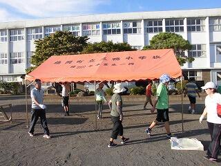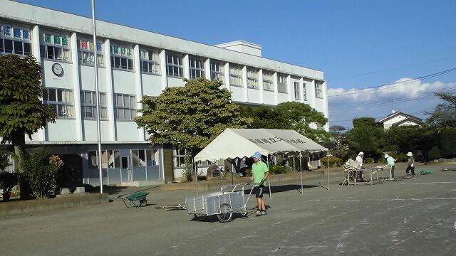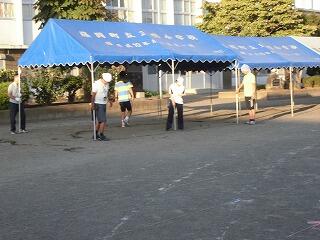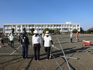 前日の準備の日に悪天候が予想されるため、地区の会長さんに確認を取って、教員だけでテントを立てました。