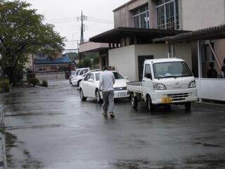 地区の方々にせっかく集まっていただいたのですが、あいにくの天気でろくに準備ができません。