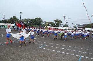 万国旗が張られたのも校庭にラインが引かれたのも当日の朝です。