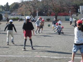 ふれあいグループごとに縦割りで遊びましたが、今日はドッジボールが多かったようです。