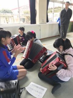 わたらせ風の子音楽祭で三鴨小学校の恒例になっている6年生の合奏、「八木節ソーラン節」を5年生が引き継ぎます。