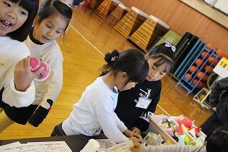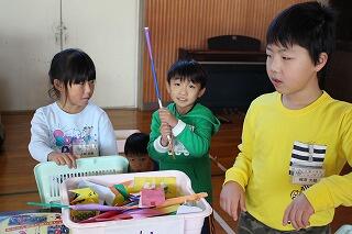 1・2年生合同で、バンビ幼稚園の年長さんをお迎えして、あそびランドを行いました。