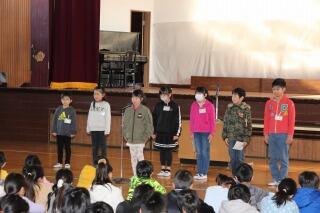 さすが6年生、動作を交えての発表に、1~5年生から笑顔が漏れました。