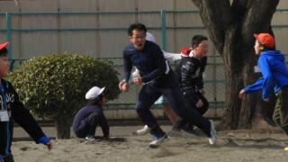 ケイドロをしているK先生にスポットを当ててみました。いや走る走る。トータルで2,3km走ったのではないかと思います。