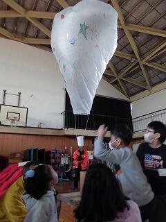 理科の「もののあたたまり方」の発展学習で、熱気球を実際に作って飛ばす体験活動を行いました。