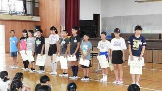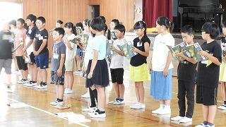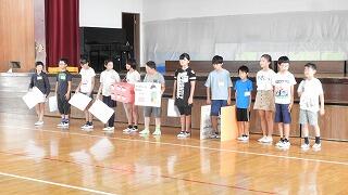 音読発表会の後、学童野球、藤岡地区陸上記録会関係の表彰がありました。