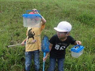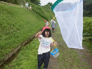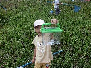 途中、大雨に降られ、予定より短い活動時間になってしまいましたが、カエルやバッタ、ザリガニなどをたくさん見つけることができました。
