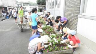 子供たちも花壇の草取りを手伝ってくれて短時間でどこもきれいになりました。