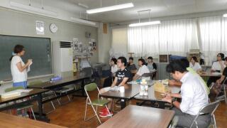 情報教育主任の谷津先生を中心に、パソコン室で研修が行われました。