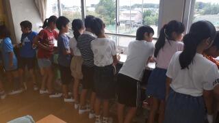 5時間目、4~6年生のソーラン節の練習が初めて校庭で行われました。