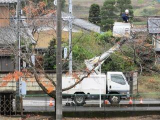強風のためスズランテープがビラビラになってしまい、電話線に絡みついてしまったのです。