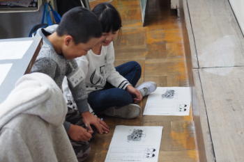 4年生の図画工作、「いい場所見つけて、囲んでみよう」では失敗もありました。