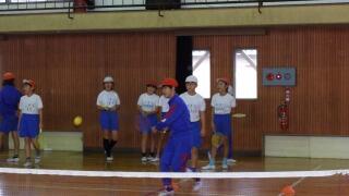 地面打ち、空中打ち、壁打ちなどの基本に始まり、チームでラリーを多く続ける作戦が考えられ、ゲームが行われました。