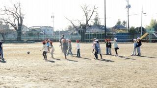 1時間目1年生は校庭でドッジボールをしていました。