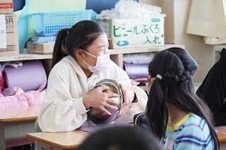 今日の朝の活動では、大気の力を体感するミニ実験を行いました。