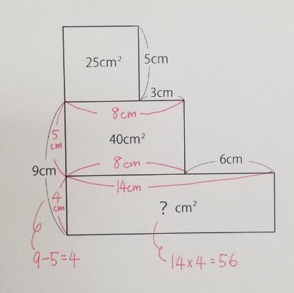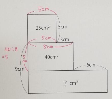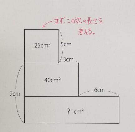 次に、分かったところ(辺の長さ)に、どんどん数字を書き込んでみよう。