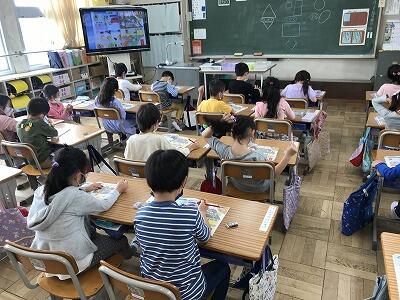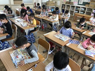 三鴨小のよいところをたくさん紹介したメッセージを、1年生の子供たちはうれしそうに一生懸命読んでいました。