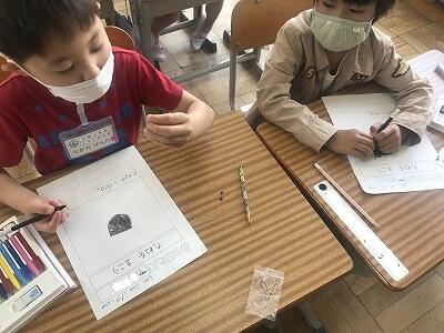 「いきものとなかよし」では、校庭の虫探しをしました。いろいろなところに隠れている虫を見付けて、大興奮。来週の校外学習の虫取りが待ち遠しくなりました。