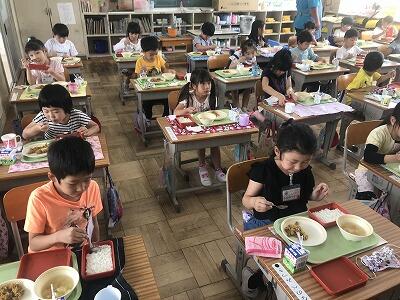 また、初めての給食では、みんなもりもりドライカレーを食べていました。