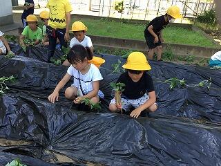 生活科の学習で、アサガオの種まきをしました。やさしく土をかき混ぜて、一粒一粒丁寧に種を土に蒔きました。