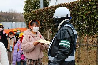 交通指導員さんとみかも駐在所巡査部長さんへ感謝のお手紙贈呈