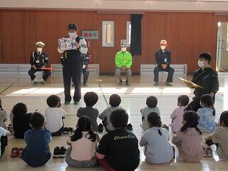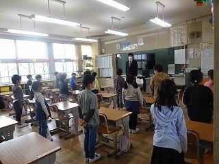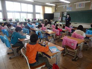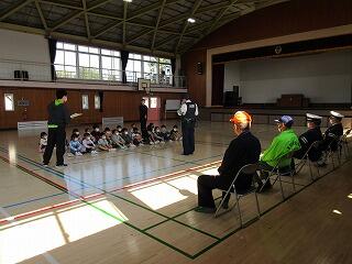 4月12日(火)に1年生の交通安全教室を行いました。当日は、三鴨駐在所長様、交通指導員様、交通安全協会の方々が講師としてお越しくださいました。体育館で登下校の防犯についてお話をいただき、その後、公道を使って横断の仕方を実際に練習しました。講師の皆様には、お忙しいところご指導いただきありがとうございました。