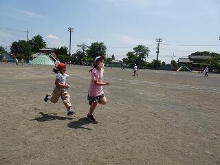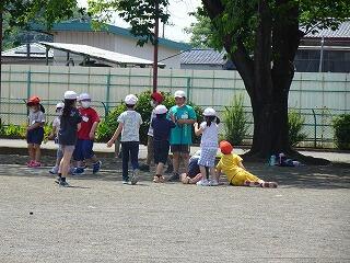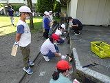 一つの班だけ『だるまさんが転んだ』で遊び,他の班はみんな『鬼ごっこ』。子供たちの体力にはびっくりです!途中,日陰で休憩タイムを取りました。今年度は,清掃もふれあい班で行っているので,もうみんな仲良しです♪