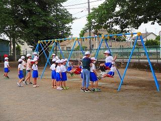ブランコの改修が行われ、今日から新しいブランコになりました。早速、休み時間に楽しむ子供たち。ルールを守って、安全に使用することができました。