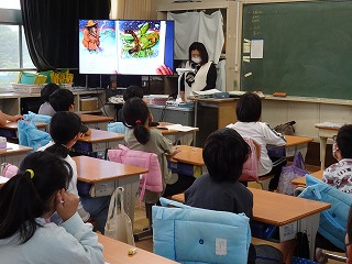読み聞かせボランティア「かたくり」さんによる読み聞かせが、朝の活動でありました。