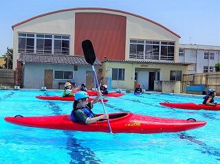 藤岡地域づくり推進課による「子どもカヌー教室」が、本校プールで開催されました。