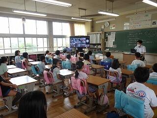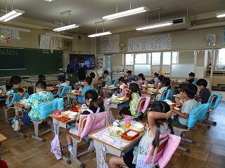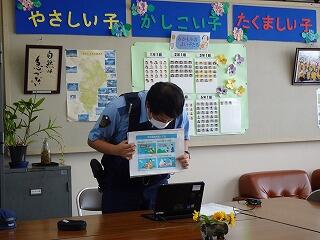 本日の給食の時間に、みかも駐在所の塚原様より水難事故防止に関するお話を伺いました。梅雨が明け、海や河川等での水の事故を防ぐための警察からの注意喚起です。水辺に行くときは、大人と一緒に行くこと。下流にいる場合でも、上流での雷や大雨に気を配り、危険を感じたら河川から離れること。など、手作りの資料を用意してくださり具体的なお話を聞くことができました。塚原様、ありがとうございました。