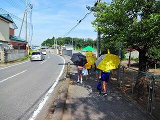 夏休みまであと数日となりましたが、最近は、朝の登校時間も既に気温が高く、暑い中の登校となっております。そんな日は、子供達は傘を差して日陰を作りながら元気に登校しております。