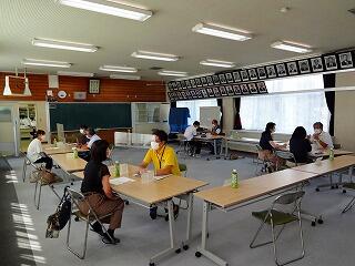 7月25日(月) 13時30分から本校にて、三鴨地区の民生委員さん、主任児童委員さん8名の方にお集まりいただき、本校職員との懇談会を実施しました。