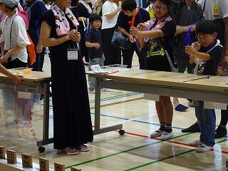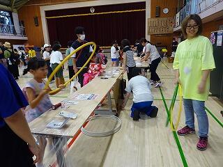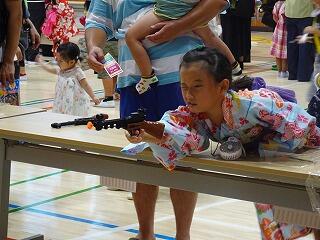 体育館では「射的」「輪投げ」などのゲームで福引き券をゲットして景品と交換