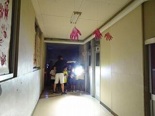 校舎では、夜の校舎を探検で先生たちがこわーいお化け屋敷にご招待
