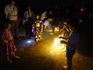 そして、校庭では打ち上げ花火や手持ち花火で楽しみながら、藤岡八木節愛好会の方々が囃子で盛り上げてくださいました