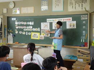 9月6日(水)、5年生が食育の授業を受けました。藤岡中の須藤先生をお招きして「バランスのよい食事」について学習しました。