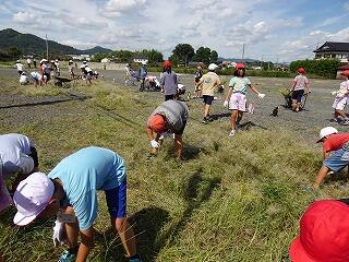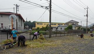 9月17日(日)早朝からPTA整美部による除草作業が行われました。子供たちの手では取り切れなかった北側駐車場の草をきれいに除草してくださいました。おかげで、運動会ではきれいな駐車場を利用していただくことができます。